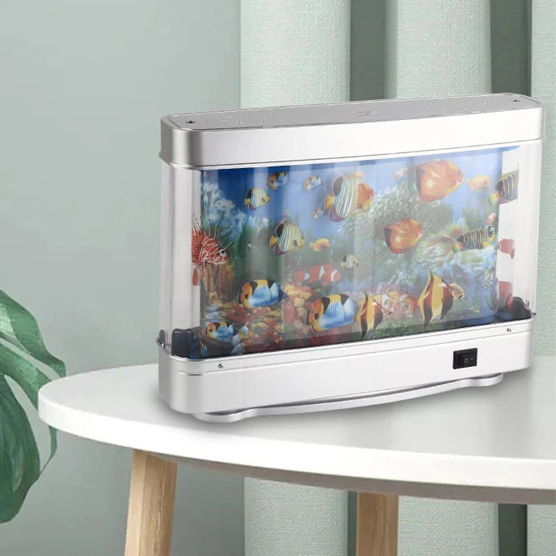 Skapa en förtrollande djuphavsupplevelse direkt i ditt vardagsrum med denna konstgjorda tropiska akvarielampa. Den realistiska och levande rörelsen hos de färgglada fiskarna ger en omedelbar lugnande effekt, vilket är avgörande för att minska stress och oro efter en lång arbetsdag. Detta är drömlösningen för dig som älskar skönheten hos ett akvarium, men som vill slippa problemet med veckovis rengöring och underhåll helt och hållet, så att du kan fokusera på total avkoppling.