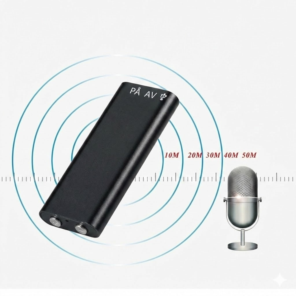 Med ett format på endast 47 gånger 19 mm är denna inspelare definitionen av bärbarhet. Den slimmade och lätta designen är specifikt framtagen för att förbli dold, vilket löser problemet med iögonfallande inspelningsutrustning direkt. Tack vare den intuitiva enknappsstyrningen är enheten extremt enkel att använda, så att du kan börja spela in blixtsnabbt även i oväntade situationer. Detta höjer din effektivitet direkt i arbetsflödet eftersom du kan fokusera helt på samtalet medan inspelaren sömlöst sparar varje viktig detalj åt dig.