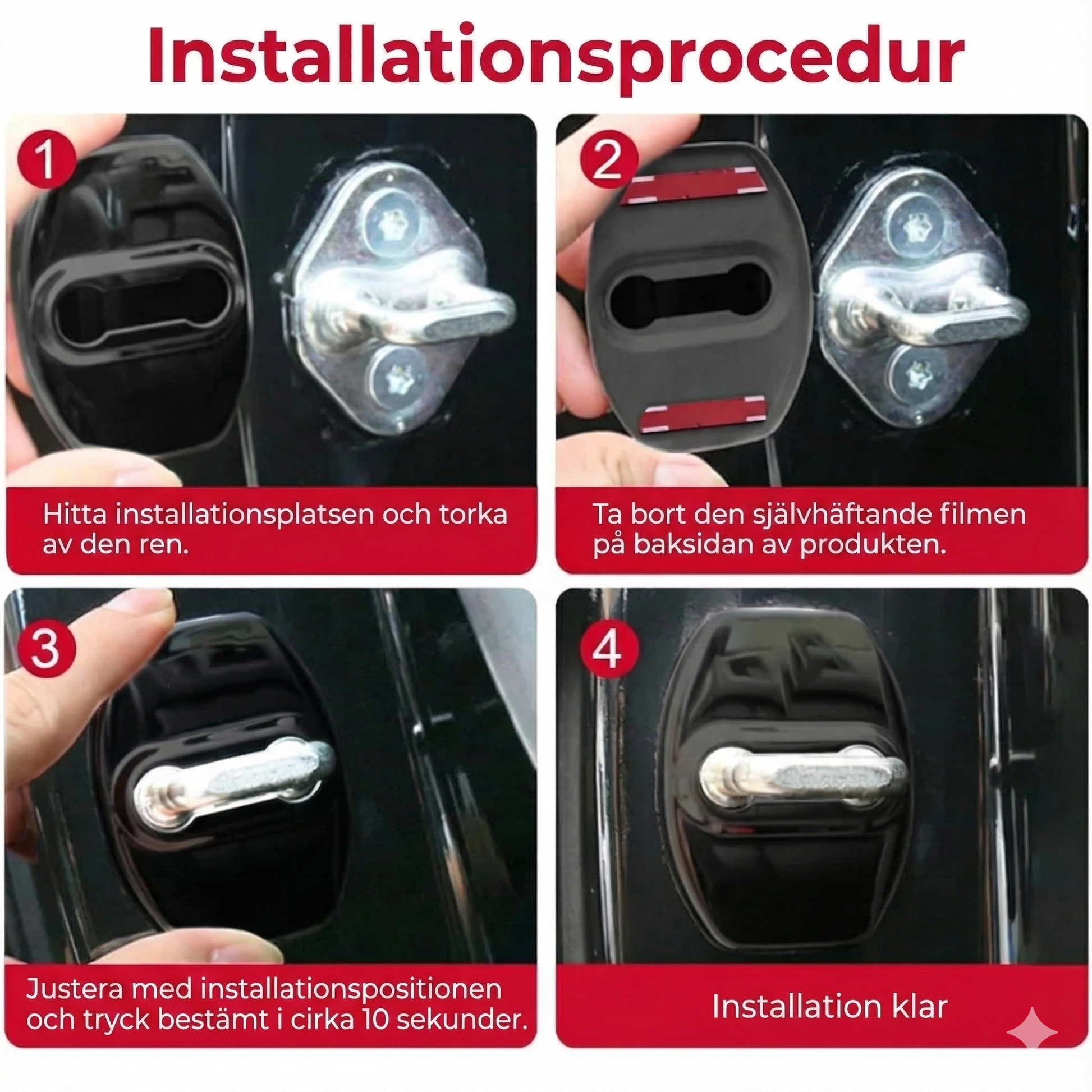 Du behöver absolut inte vara teknisk eller händig för att genomföra denna uppgradering. Installationen är designad för att vara supersnabb och otroligt enkel; du behöver inga skruvar, borrar eller göra några ingrepp. Ta bara bort skyddsfilmen från den kraftfulla dubbelhäftande tejpen, placera skyddet över låset och tryck till ordentligt i 5 sekunder. På några ögonblick sitter det bergfast, så att du kan njuta av resultatet direkt utan krångel eller monteringskostnader.
