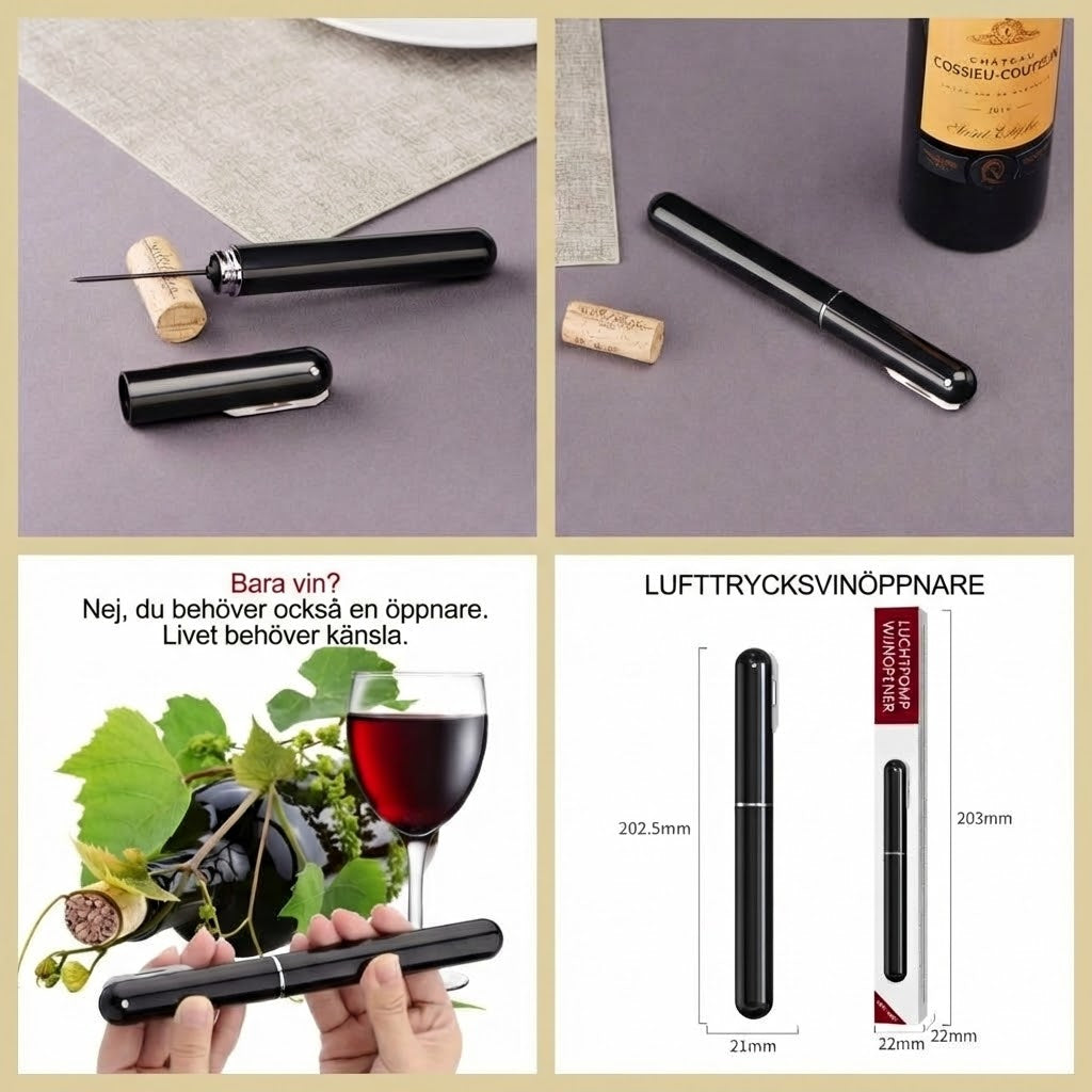 Glöm kampen med trasiga korkar som hamnar i ditt dyra vin. Denna innovativa 2-i-1 vinöppnare använder avancerat lufttryck för att ta bort korken helt utan ansträngning och i ett stycke. Tack vare den inbyggda folieskäraren gör du flaskan redo för servering på ett ögonblick. Detta smarta system löser problemet med korksmulor direkt, så att du alltid kan njuta av ett rent och perfekt glas vin, oavsett om det är en naturkork eller syntetisk kork.